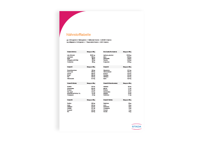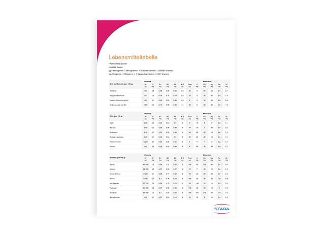 Hier erhalten Sie unsere Informationsbroschüren und Lebensmitteltabellen zum Download.